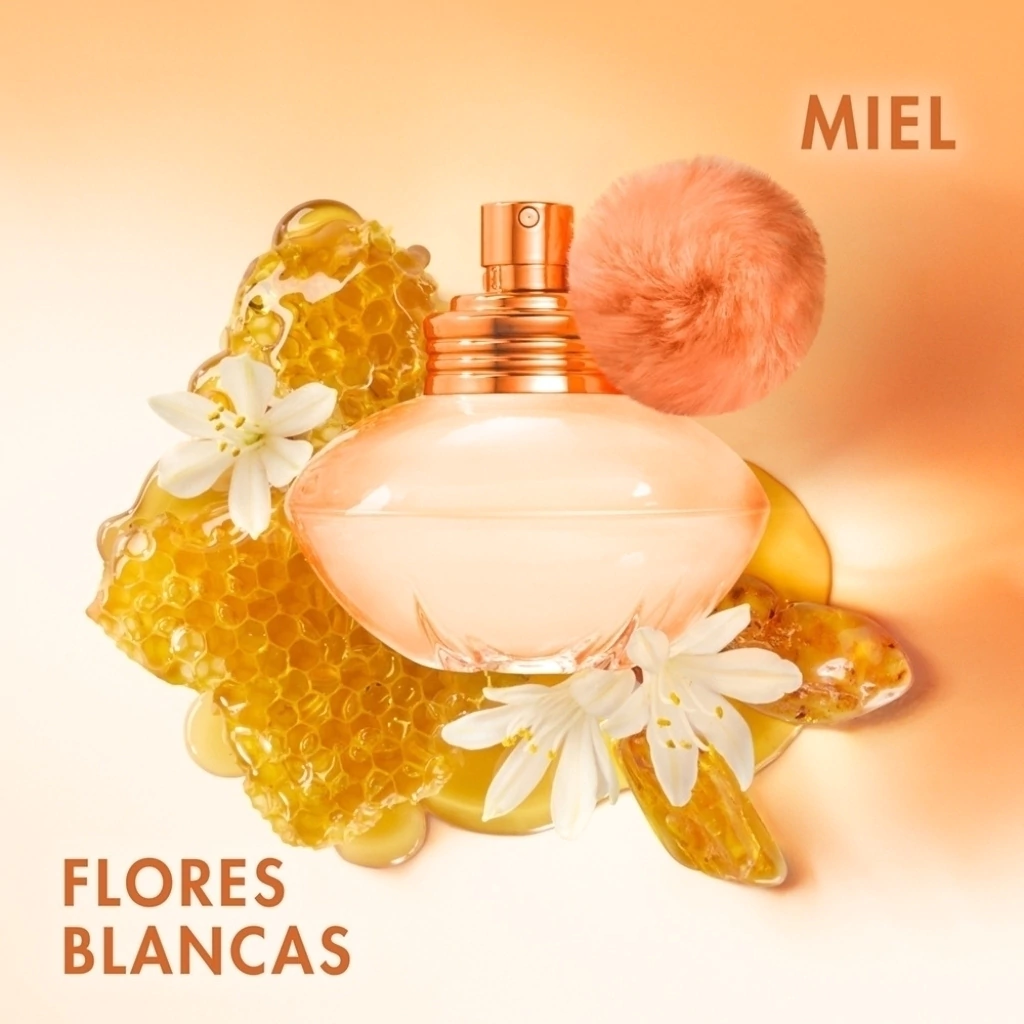 Notas de salida: La fragancia abre con un estallido de miel dorada y cítricos frescos, creando una sensación inicial irresistible y brillante que captura la atención de inmediato.