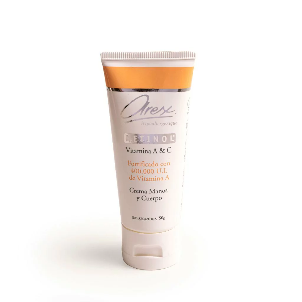 Descubrí el poder de la crema para manos y cuerpo AREX Retinol, una fórmula avanzada que combina la eficacia del Retinol (Vitamina A activa) con la Vitamina C para brindarte una experiencia única en el cuidado de la piel.